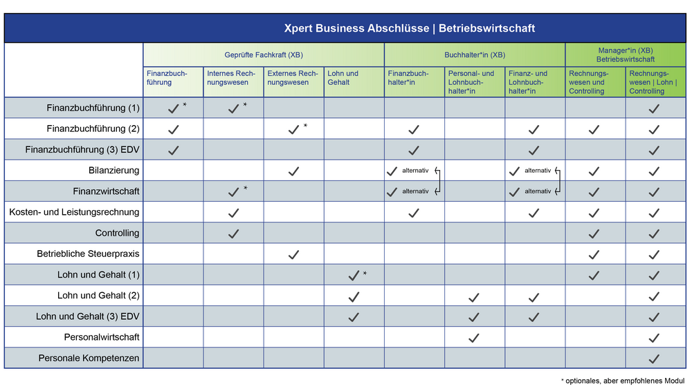 Alle Kursmodule mit Stundenzahlen und Lernzielkatalogen finden Sie auf der Xpert-Business-Webseite (http://www.xpert-business.eu/kursuebersicht.html)